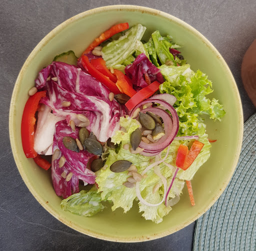 Read moreDie Stadthalle hat neue Pächter! Das Essen ist top, mehrheitlich deutsche Küche mit teilweise türkischem Anklang (darf nach und nach gerne etwas mehr werden ;-) . Das Personal ist sehr aufmerksam und freundlich (wenn Gäste Hunde dabei haben, kümmert man sich auch um sie). Es gibt einige Tische im Freien (zugegebenermaßen mit Geräuschkulisse von der Straße, aber dafür können die Pächter ja nix!) und jede Menge Platz drinnen. Eine Reservierung zumindest für draußen ist empfehlenswert, die Stadthalle ist definitiv gut besucht und das zu Recht, wir kommen auch auf jeden...