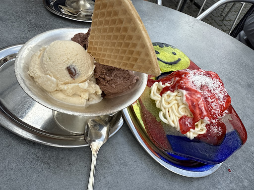 Read moreIch war heute mit meiner 89-jaehrigen Mutter in Amberg unterwegs und wir kauften uns je 1 Kugel Eis. Meine Mutter ist behindert und geht mit 2 Krücken. Auf meine Frage, ob sich meine Mutter, um das Eis Essen zu können an einen der freien Tische (nur einer war besetzt) setzen koennte wurde vom Inhaber barsch abgewiesen. Er muesse schließlich für die Aussengastronomie 19% Mehrwertsteuer anstelle von 7% im Straßenverkauf entrichten. Die städtischen Bänke in der Nähe waren alle besetzt. Einen derartig unsensiblen Umgang mit hochbetagten Behinderten habe ich noch nicht erlebt. Das gekaufte Eis war zwar geschmacklich gut aber viel zu weich und tropfte selbst bei 18 Grad Außentemperatur. Nie wieder! Gabi...