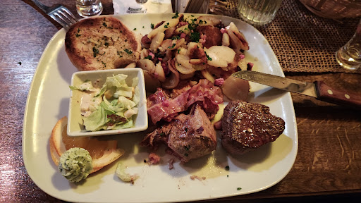 Gibts einen neuen Koch in der Küche? Frühe war das Essen so lecker, richtige Hausmannskost wie man es aus einem Gasthof eben kennt. Aber heute war es einfach nur enttäuschend. Ich hatte ein Stück Plastikfolie im Salat, die Sprite hatte keine Kohlensäure mehr. Mein Rind war sehr blutig und kalt. Zum Glück mag ich es blutig, aber normal wird man ja gefragt, wie man das Fleisch möchte. Die anderen hatten wabbeliges TK-Schnitzel und Pommes, die nicht durch waren und einmal falsche Beilagen.. Wir wurden leider nicht gefragt, ob es schmeckt, sonst hätten wir früher was gesagt. So haben wir am Ende ein Schnitzel weniger gezahlt und einen Kaffee aufs Haus bekommen. Immerhin etwas! Aber die Qualität ist nicht so, wie wir es eigentlich aus den letzten Jahren kennen :-( Eine Kellnerin trug ein Bauch freies Shirt. Im winter? In der Gastro? Gehört sich einfach nicht. Trinkgeld verdient man sich durch gute Leistung, nicht durch...