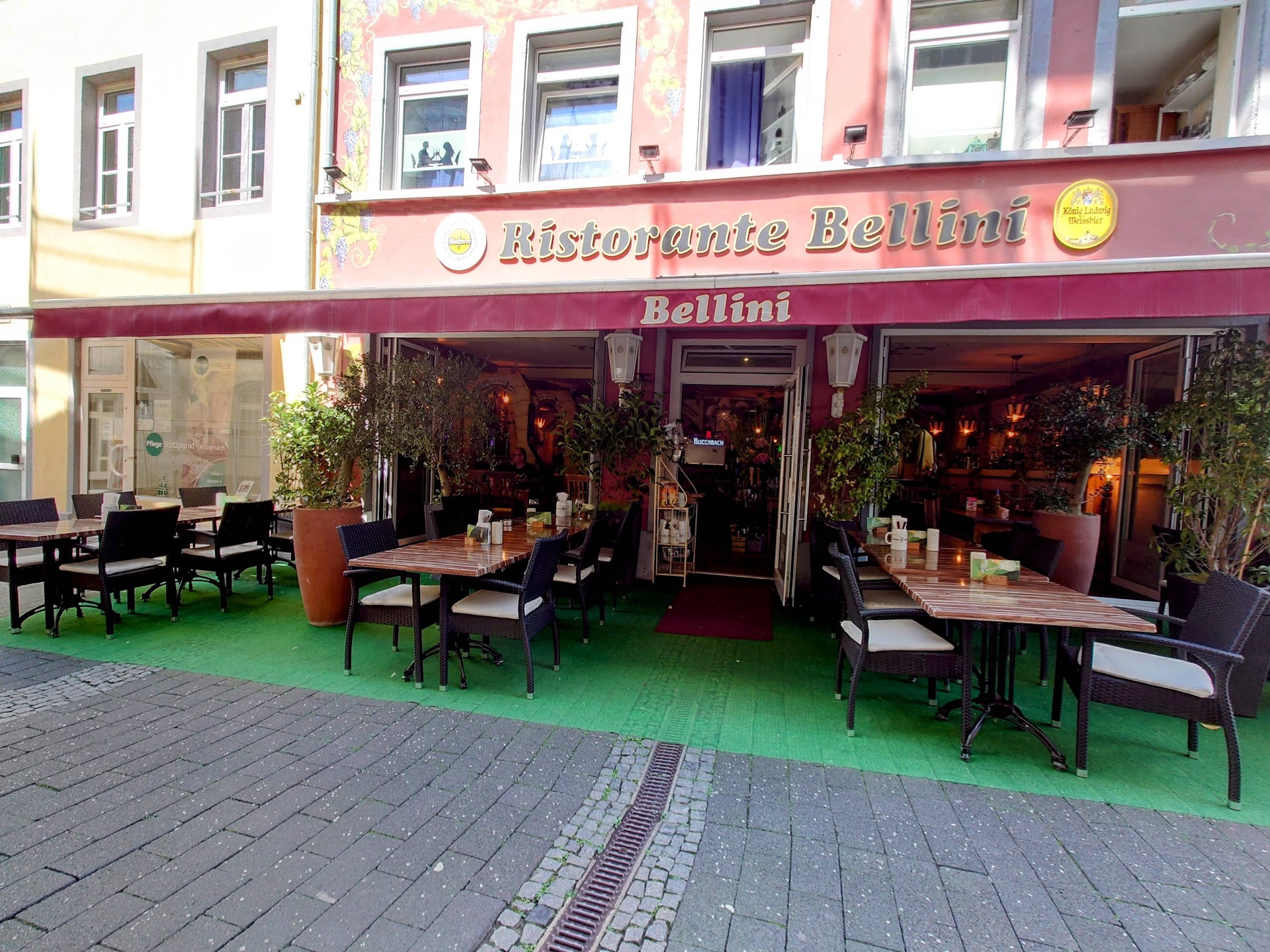 Read moreDas Ambiente ist einfach völlig veraltet, die Musik ist so laut, dass es, schwer fällt ein Gespräch zu führen. Eine Bruschetta "Traditionale" für 10,50 Euro kam mit total verbrannter Brotkruste, wobei die Brotscheiben selbst gar nicht geröstet waren. Lediglich die Kruste war rabenschwarz - der Rest weich und durchtränkt mit süsser Balsamicocreme. Darauf Tomatenstücke und Ruccola. Kein Knoblauch, kein Olivenöl, kein Basilikum. Ich habe das verbrannte Brot reklamiert. Der Chef selber nahm den Teller wortlos mit und brachte ihn nach 10 Minuten wortlos zurück. Die verbrannte Brotkruste war abgeschnitten worden und alles andere wieder darauf gehäufelt. Nun noch durchweichter als vorher schon. Ich empfehle den italienischen Betreibern wieder einmal die Heimat zu besuchen um zu erfahren wie eine traditionelle Bruschetta auszusehen und zu schmecken hat und die scheinbar in Vergessenheit geratene Freundlichkeit und die Umgangsformen zu erleben, wie sie in einer Gastronomie gelebt werden, die den aufgerufenen Preisen gerecht wird. Wenn ich nicht in Begleitung gewesen wäre, wäre ich sofort gegangen. Die darauf folgenden Spaghetti Frutti di Mare bestanden aus weichgekochten Nudeln mit einer Tomatensauce aus dem Eimer und überwiegend Miesmuscheln. Und das für 15,50 Euro, das der italienischen Küche eher schadet, als ihr zur Ehre gereicht. Der offene Wein war ebenso belanglos und langweilig. Unter dem Strich sehr enttäuschend und ganz sicher KEIN Grund dieses Restaurant zu empfehlen. Es gibt in Andernach bessere...
