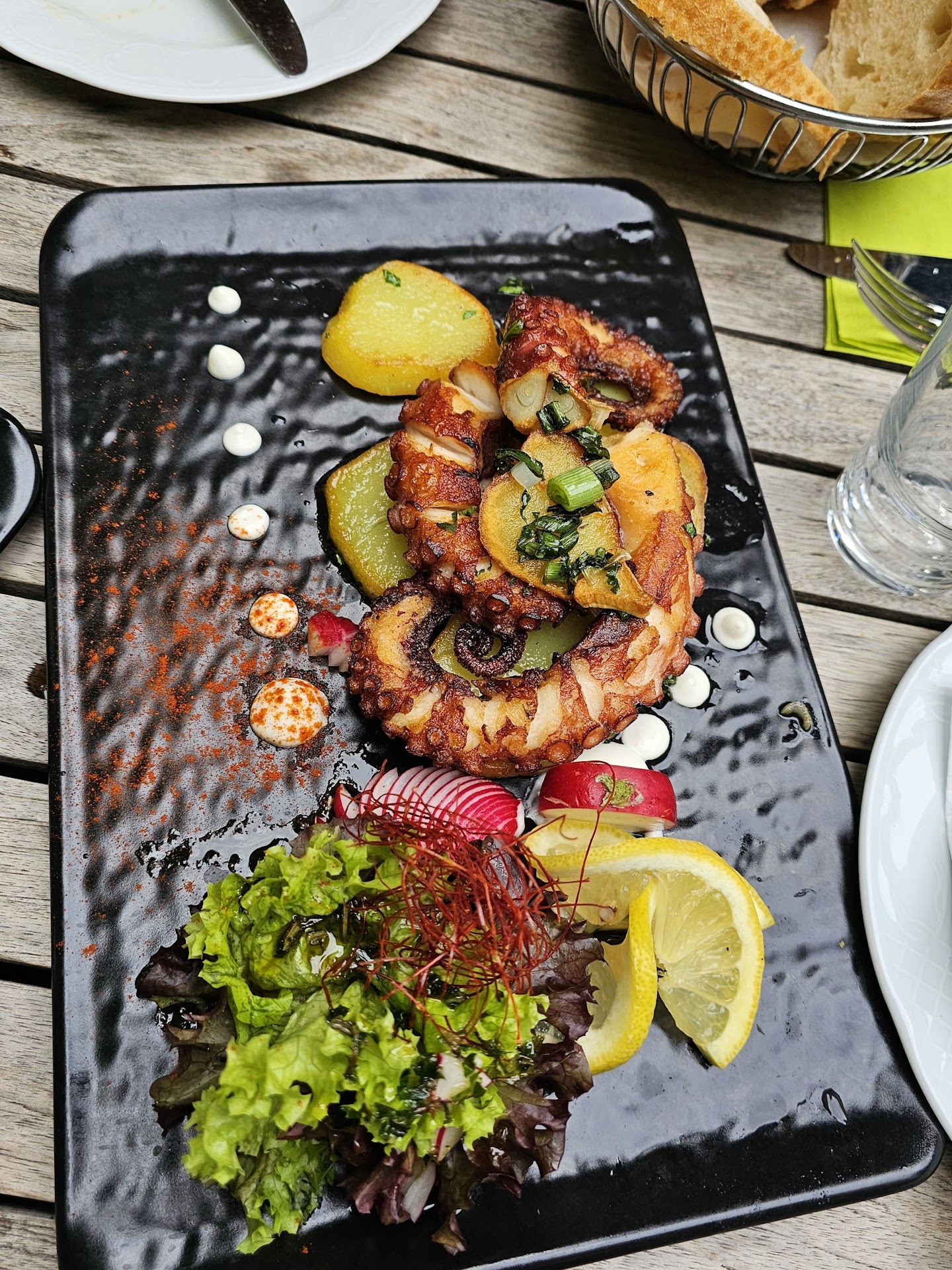 Read moreEs wurde mal wieder Zeit hier einzukehren, da mein letzter Besuch mittlerweile auch schon über 2 Jahre her ist, damals überragend und von mir mit 5 Sternen bewertet habe ich heute große Lust, eine Menge Appetit und hohe Erwartungen an das Essen. An diesem Abend ziehen dunkle Wolken über Andernach und Regen kündigt sich an, mir scheint es als wäre es ein Synonym für den heutigen Restaurantbesuch. Am Eingang liegt die Tageskarte aus, Vorspeise Pulpo, Hauptgang Lammschulter, super denke ich, das passt heute Abend. Unser Wunsch nach einem Sitzplatz außen wird von der Chefin, mit dem Hinweis, dass es regnen soll, forsch abgelehnt. Dieses kann ich natürlich verstehen, aber der Ton macht die Musik, dazu später mehr. Ich freue mich aufs Essen, bestelle aus der Karte, welche eine andere ist wie die richtige zuvor am Eingang ausgelegte, Steinpilzravioli und Rumpsteak medium rare soll es heute sein. Die Ravioli gut, aber ich glaube nicht selbst gemacht, dafür war in der Füllung zu viel Paniermehl zur Bindung, welches meist ein Hinweis dazu ist. Das Rumpsteak als Hauptgang leider nicht medium rare. Es erinnerte mich sehr an ein Tunfisch Tataki, angebraten und mit grauem Ring aussen und innen kühl und roh. Das Problem mit dem richtigen Garpunkt schien an diesem Abend auch an den Nachbartischen zu existieren. Solche handwerkliche Fehler war ich hier bisher nicht gewohnt. Da aber meine Gäste im großen und ganzen zufrieden waren, Schwamm drüber. Aber Lust auf ein Dessert verspüre ich nicht mehr. Nach dem Verlassen des Restaurants sehe ich jedoch, dass einige Tische außen besetzt sind. Wird hier mit zweierlei Maß gemessen? Ich denke zwar nicht, aber ein...