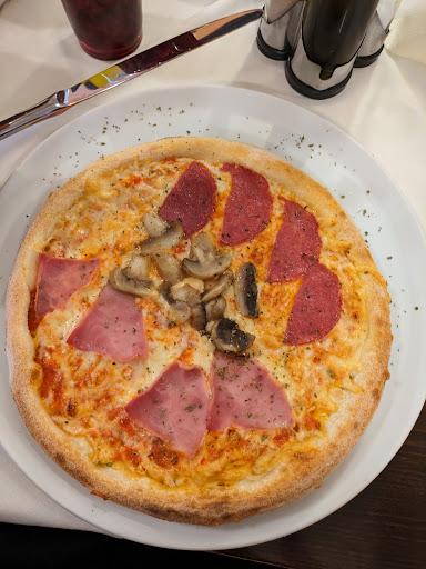 Read moreDas Ambiente sieht sehr nobel aus und schafft eine angenehme Atmosphäre zum Essen. Die Bedienung ist super freundlich und kümmert sich schnell um die Belange des Gastes. Ich finde es vor allem sehr schön, dass hier die Preise absolut fair sind. Allerdings leidet hier die Qualität des Essens darunter. Bezogen auf die Pizza kann man sagen, dass die Soße ungleichmäßig verteilt wurden genauso wie der Belag. Die Pilze sind leider nicht frisch, die Pizza schwamm quasi in Käse und zudem war die Pizza nicht ganz durch gebacken, während Teile des Randes Recht kross wurden. Der Ofen scheint hier entweder nicht ganz angelaufen zu sein oder ist falsch eingestellt. Am Ruß des Pizzabodens gehe ich mal davon aus, dass ein Pizzaofen oder etwas ähnliches vorhanden ist, daher kann man sicherlich noch mehr rausholen. Der Teig der Pizza isteiner Vermutung nach vorgefertigt geliefert, was leider echt schade ist, da Pizzateig für gewöhnlich aus Recht rudimentären Zutaten besteht und die meisten italienischen Restaurants Grade mit selbstgemacht glänzen im Vergleich zu anderen Restaurants. Ich bin mir ziemlich sicher, dass hier noch mehr Potenzial rausgeholt werden kann. Zur Pasta kann ich nichts sagen. Vielleicht beim...