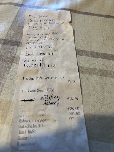 Read moreDas indische Restaurant des Mr.Food ist ein Muss für alle, die authentische indische Küche lieben. Von dem Moment an, in dem Sie eintreten, werden Sie von den warmen und einladenden Aromen von Gewürzen und Kräutern begrüßt. Die Speisekarte bietet eine große Auswahl an Gerichten, von klassischen Currys bis hin zu Tandoori-Spezialitäten, die alle mit frischen Zutaten und viel Liebe zum Detail zubereitet werden.