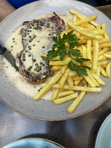 Wir waren vor etwa 3 Wochen in Annweiler unterwegs und wollten hier zu Abend essen. Das Restaurant hat um 17:30 Uhr geöffnet und wir waren gleich dort, um zu fragen, ob noch ein Tisch frei wäre. Das war kein Problem, die blonde Kellnerin fragte und zwar sehr unfreundlich und plump „rein oder draußen?!“ jedoch hat uns das Ambiente sehr gefallen. Wir saßen im Innenhof, das war wirklich gemütlich. Mit uns waren bereits einige Gäste an den Tischen, was uns weiter positiv stimmte, dass man den Bewertungen auf Google Glauben schenken kann.