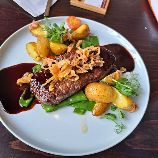 Read moreDas Essen ist erstklassig, Koch und Küche gehören zu den Besseren. Die Portionen sind nicht übermäßig, die Speisen anschaulich angerichtet und schmecken - was für die doch gehobene Preisklasse zu erwarten ist. Die Karte beinhaltet von Fisch, Fleisch, veganen und vegetarischen Gerichten alles. Die Getränkekarte ist gut sortiert - auch hier alles im gehobenen Preissegment. Ob das so gerechtfertigt ist muss sich jeder Gast selber überlegen {Prisecco Jörg Geiger für 25 Euro, Ladenpreis 9,99 Euro 😳}.