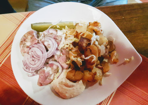 Read moreWährend der gut 5min Wartezeit im Restaurant ohne jeglicher Aufmerksamkeit des Personals, konnte ich einen ästhetischen Blick in die Küche erhaschen. In der Küche stand die eine Junge Dame die sich ausgiebig über den, auf der Arbeitsplate liegenden Pommes, in aller ruhe aus-gehustet hat. Als ich mich nach diesen Anblick entschloss, da ja eh immernoch kein Personal auf mich aufmerksam geworden ist, zu gehen, kam doch endlich der Gastwirt und fragte schon ziemlich pissig was ich denn hier wolle. In meinen Augen eine berechtigte Frage in einer Gaststätte... Zum Essen als solches kann ich nichts sagen ... Vielleicht schmeckt es, vielleicht...