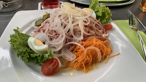 Man zeigte uns schließlich,den für uns vorgesehenen Tisch. Kurze Zeit später, legte eine junge Dame die Speisekarten auf den Tisch, jedoch blitzschnell war sie auch wieder weg. Keine Möglichkeit etwas zu bestellen. Bedauerlicherweise saßen wir dann eine halbe Std. bis jemand die Getränke aufnahm. Bei der Hitze, wäre die Getränkeversorgung vorrangig. Nach weiteren 15Min. bekamen wir endlich die Getränke, das Schorle war nur gefärbtes Wasser, zu dünn. Das Team war total überfordert , sie bemühten sich zwar, aber es war ein heilloses Durcheinander, arbeiten ohne Struktur. Da kann man schon den Überblick verlieren und unnötige Wartezeiten entstehen! Als dann endlich jemand das Essen aufgenommen und wir hatten uns bereits auf eine lange Wartezeit eingestellt! Das Essen kam gleichzeitig an den Tisch und sah gut aus. Geschmacklich fad, ist noch Luft nach oben, aber gut angerichtet und frisch. Was man vom Brot nicht behaupten kann. Erst als man das Geschirr abräumte, wurde nach weiteren Wünschen gefragt.