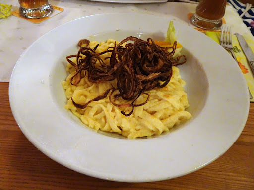 Es werden allerlei regionale und überregionale Speisen angeboten, die uns auch gut geschmeckt haben. Lediglich die Zwiebeln auf den Spätzle waren sehr angebrannt und somit nicht mehr genießbar. Ansonsten war alles wunderbar – auch der Gruß aus der Küche als kleiner Vorgeschmack (siehe Bilder) war eine schöne Überraschung.