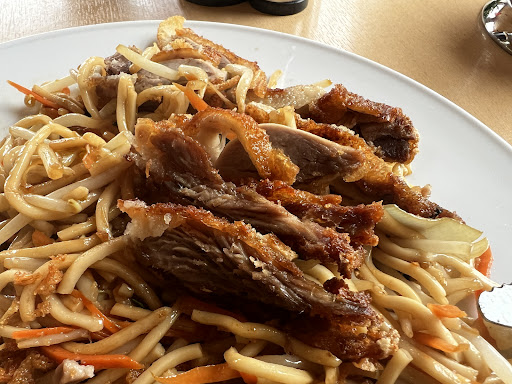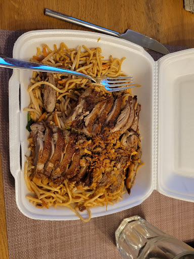 Read moreDas Essen ist ok - nicht mehr, nicht weniger. Man wird satt, das war es dann aber auch. Ich hatte gebratene Nudeln mit Ente und Gemüse bestellt. Das Gemüse stellte sich leider als ein paar Karottenstreifen und Zwiebeln heraus. Die Ente war durchschnittlich. Zwar handelt es sich „nur“ um einen Imbiss, jedoch hätte ich vom Ambiente etwas mehr erwartet. Überall stehen Paletten von Getränkdosen, der Eingang wirkt sehr heruntergekommen. Vor der Tür stehen alte Styrorporlieferboxen, in welchen Erde mit verkümmerten Pflanzentrieben vor sich hinvegetieren. Das Personal wirkte auf mich gelangweilt /...