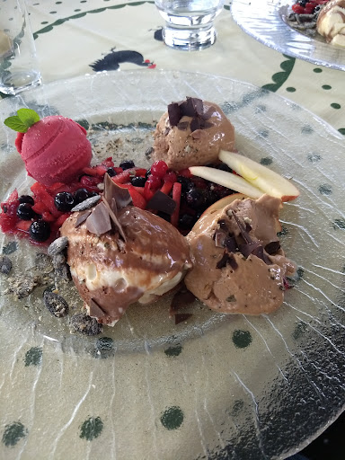 Read moreAmbiente schön, viele Stilbrüche in der Einrichtung, aber charmant, Personal freundlich aber nicht professionell, wirkte eher überfordert, hat sich angezogen wie Ferienjobber, kaputte Jeans, Flecken auf der Bluse, da keine Bedienschürzen getragen wurden, Essen qualitativ sehr unterschiedlich, Vorspeise Feldsalat, schöner Salat, leckerer Speck und Krächerle, die Soße hat allerdings geschmeckt wie mit Wasser verdünnte Sahne ohne Gewürze, sehr schade, Winzersteak, das Fleisch phantastisch gut und auf den Punkt, wie ich es mag gegart, allerdings war das wohl Zufall, denn danach gefragt, wie man sein Fleisch möchte wurde nicht, das Gemüse sehr lecker und knackig, die Soße überwürzt (hätten sie davon mal was an die Salatsosse getan) die Pommes knusprig, doch leider ungesalzen. Bei der Nachspeise hätte ich mir gewünscht, dass bei den Desertvariationen gestanden hätte aus was diese bestehen, Apfelsalat mit Pfefferminze ist nicht jedermanns Sache und Grießbrei im Glas (geraten) etwas popelig für angeblich gehobene Gastronomie, die Mousse war dafür sehr lecker... als Krönung lief der Hund des Besitzers durch den Gastraum, was mancher vielleicht süß findet, mich hat es gestört, ein an Gästen schnuppernder Hund hat in einem Restaurant dieser Preiskategorie nichts zu suchen. Außerdem sind die Wartezeiten sehr lange, zugegeben das Restaurant war sehr voll als wir kamen, beim Desert war aber nicht mehr viel los und wir mussten trotzdem fast eine halbe Stunde drauf warten Fazit: Alles in allem werde ich da wohl nicht mehr...