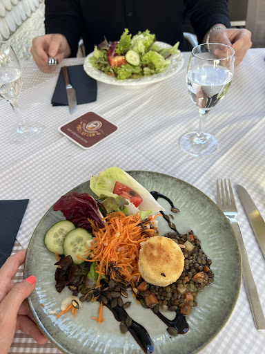 Wir hatten einen Salat mit Maultaschenstreifen als Vorspeise, welcher sehr lecker mariniert war. Danach als Hauptgang den Zwiebelrostbraten. Die Soße und die Käsespätzle waren hervorragend, das Fleisch jedoch durchwachsen und knorpelig. Meine Frau konnte einen Teil nicht essen. Bei 36.- € für einen Zwiebelrostbraten (bei welchem das Fleisch der Hauptdarsteller ist) darf das nicht passieren. Wenn ich andere Bewertungen ansehe, dann ist das kein Einzelfall.