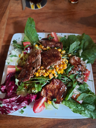 Read moreBedienung war sehr nett, und Ambiente auch ganz schön. Aber das Essen war leider eine Katastrophe! Der Preis war viel zu hoch, 12,50€ für ein bisschen Brot mit Tomaten und Rucola draufgeklatscht war schon eine sehr harte Enttäuschung. Es wurde als die vegane Hauptspeise auf der Karte angepriesen, da hatte ich mir für den Preis zumindest veganen Käse als Topping oder alternativ etwas mehr Gewürze oder Öl als Topping erhofft. Die Tomaten und der Rucola waren nichtmal mit Pfeffer oder Salz gewürzt oder mit Olivenöl vermischt oder ähnliches, nein, es waren einfach nur Rucola und Tomaten auf Brot ohne alles. Und das schlimmste war noch, dass das Brot nichtmal vernünftig gebacken wurde. Es war in der Mitte einfach eine extrem riesige Luftblase, sprich man hatte nichtmal was von dem Brot. Mein Bruder, der mit mir essen war hatte ebenfalls eine viel zu teure und schlecht gekochte Carbonara mit einer viel zu kleinen Portion, und war ebenfalls sehr unzufrieden mit dem Essen. So ein schlecht zubereitetes Essen, für so einen hohen Preis habe ich lange nicht mehr erlebt. Definitiv keine...