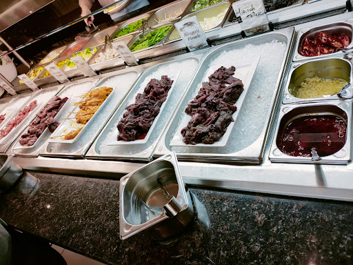 Neben einer sehr großen Auswahl an Süßspeisen und Nachtisch gibt es nur eine ehr geringe Anzahl von vorbereiteten asiatischen Gerichten. Die fertigen Speisen in den Warmhaltebehältern sind teilweise verkocht oder eingedickt und durch das unterrühren von Nachfüllenmengen ändert sich stets der Geschmack, auch sind die Fleischstücke teils garnicht oder nur einseitig gebraten und ansonsten nur duchgegart. Mitunter ist auch die Temperatur viel zu gering, als dass das Essen am Tisch noch eine angenehme Wärme hat, wenn man sich beim Aussuchen und Auflegen nicht extra beeilt.