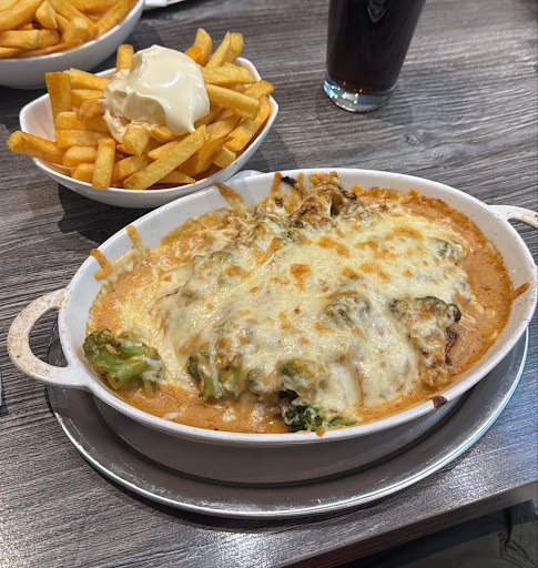 Besonders hervorzuheben sind die ĂŒberbackenen Gerichte, die durch ihre perfekte Kombination aus WĂŒrze und Textur ĂŒberzeugen. Auch die Beilagen werden mit Bedacht serviert â knusprige Pommes mit fein abgestimmten Saucen runden das Gesamtbild ab.