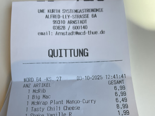Also langsam ist’s wirklich nicht mehr witzig. Bei fast jeder Bestellung fehlt mindestens eine Sache – diesmal wurde unser Philly Cheese Burger einfach gegen einen Samurai Mac vertauscht. Ein kompletter Burger hat gefehlt und das Getränk war natürlich auch falsch. Wie schwer kann es sein, eine Bestellung richtig zu packen?