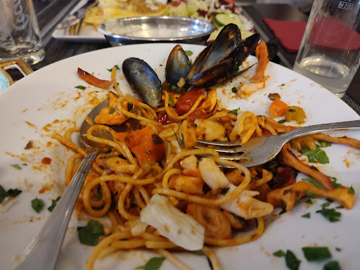 Read moreLeider kann man keine Minuspunkte geben für das Essen. Das Personal war freundlich. Schnitzel und Spaghetti frutti die Mare bestellt. Spaghetti al dente ok, Krabben ok, Rest war Katastrophe so ekligen Tintenfisch 🐙 habe ich noch nie gegessen, er war bretthart und trocken mit surimi, mir muss auch mal jemand erklären, wie man frische Muscheln so trocken bekommt. Schnitzel war auch nicht lecker, Salat ohne Sauce. Alles im Baukastensystem Vorsicht Preisfalle. Wir haben insgesamt 41,60 bezahlt. Der Kellner hat das Trinkgeld einfach einbehalten. Die Reklamation - Gutschein- nein Danke, nie wieder. Pizza beim Nachbarn sah trocken aus, bei ihm fehlten Kapern. Sehr überteuert und nicht zu empfehlen. Schade. Cola ok. Das habe ich so zurück geschickt. Fertigfood aus d. Tiefkühler. Mir ist jetzt noch...