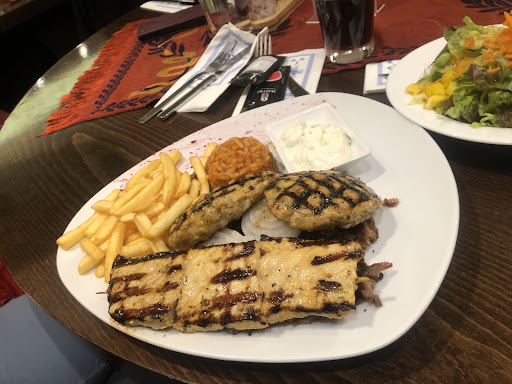 Das Ambiente orientiert sich sehr an klassischer Ruinendarstellung, das gilt leider auch für die Qualität der Einrichtung selbst. Die Getränke durchschnittlicher Qualität wurden nach etwas Wartezeit serviert, die Kellner waren bemüht freundlich, die Kellnerin etwas pfiffiger. Gefüllte Paprika (warm) hatten einen etwas eigenartigen Geschmack, waren aber soweit in Ordnung, der Salat dazu genießbar. Der obligatorische Beilagensalat enthielt eine Gurkenscheibe und eine halbe Tomatenscheibe, allerdings konnte ich diesen Salat aufgrund des sauren und wenig gaumenerfreuenden Dressings nicht essen. Die Hauptspeise - Akropolis Teller wurde warm (nicht heiß) serviert, weshalb die Calamari-Türmchen schnell auskühlten und die Panade abfiel. Das Gyros war eher lasch als rösch und ließ es daher deutlich an Röstaromen zu wünschen übrig. Die Garnele, welche noch im Gehäuse residierte wartete wohl schon etwas länger auf Ihren Auftritt und ließ es an Frische fehlen. Das Souflaki (Fleischspieß) war noch am ehesten zu genießen. Erstaunlich war die Flexibilität und Geschmacklosigkeit der weichen Pommes frites, der Tamatenreis hatte zwar ebenfalls einen eigenartigen Beigeschmack, jedoch dank guten Hungers zumindest bis zur Hälfte abarbeiten. Das Tsatsiki war durchschnittlich aber halbwegs genießbar.