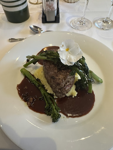 Meine Begleiterin entschied sich für die delikate französische Perlhuhnkeule, die mit einer raffinierten Rotweinreduktion serviert wurde. Das Huhn war saftig und aromatisch, während der wilde Brokkoli und der Kartoffelbäumkuchen eine wunderbare Ergänzung darstellten. Jeder Bissen war eine Geschmacksexplosion, die zum Staunen einlud!
