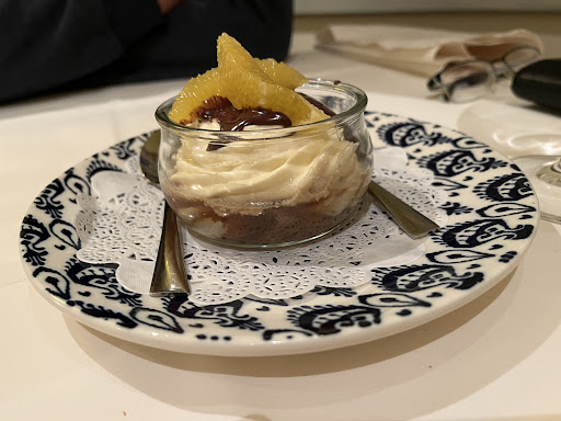 Das Essen war sehr lecker. Ich hatte das Iberico Schwein mit Trüffelkruste und Pasta in Trüffelsoße. Der Empfohlene Wein hat das Essen perfekt abgerundet. Die Portion war genau so groß das ich satt aber nicht zu voll geworden bin. Auch die Gnocchi mit Lachs von meinem Partner haben sehr gut geschmeckt. Zum Nachtisch gab es noch Orangentiramisu und einen leckeren selbst gemachten Limoncello.