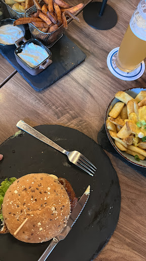 The burgers are very good and not processed at all. Downside is that it costs almost 10€ for a burger, and you don't even get a side of fries. That losses this restaurant two stars. You should always include Fries especially if the burger cost almost €10. Fries are very inexpensive and filling so it doesn't hurt to include them in price . Now if you think this is an unfair review just remember a döner cost only four-and-a-half euros. That being said the burgers are great but not that filling for 10€. For that much money, and such little food I would rather go to a döner restaurant, and get a döner plate with fries a salad and Döner meat for 10€. Let me end this review by saying this is a very good hamburger ,and if you don't care about the price you should definitely go to this...