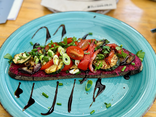 It was the first time here. Absolutely recommended for a brunch. The service is attentive and friendly. The suggestions are provided to choose from the menu. The food was delicious; specially the Veganes Brot with beet root humus. I had the cheesy grilled sandwich filled with Feta cream and antipasti. Both were really good with the flavours. They have a nice bar too. The ambience is rustic and artistic with all those paintings on the walls and raw bricks. They do have a nice outside seating arrangement; which is fun during a nice summer afternoon. Overall a good place to choose for...
