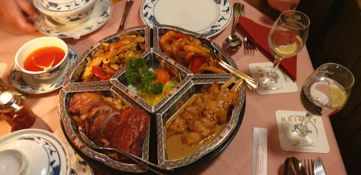 Geschmacklich war es gut, da der Fensterplatz aber zugig und kalt war, ist das Essen sehr schnell kalt geworden. Schade drum. Ich hatte mit meiner Mutter zusammen eine Chinesische Reistafel. Da die sehr reichlich war packten wir unser Essen nicht. Den Rest ließen wir uns einpacken. Es handelte sich bei dem Rest um: 4 Scheiben Ente, 5 Scheiben Huhn knusprig auf einem Sellerie-Karotten-Bett, Schweinefleisch mit Gemüse und Pilzen und mit gleicher Beilage auch Rindfleisch, Reis und Gemüse. Als die Bedienung mit dem eingepackten Essen wiederkam staunten wir nicht schlecht. Alles war in einem Burger-Behälter. Wir sprachen die Bedienung drauf an und sie meinte nur "Es ist alles drin". Als uns später die Chefin abkassierte sprachen wir diese auch drauf an. Die nahm ihre Mitarbeiterin in Schutz und sagte, diese Dame wäre sehr korrekt. Sie holte sogar einen größeren Behälter und füllte um. Und sie wurde dabei sehr ärgerlich und pampig. Am nächsten Tag wollte ich den mitgenommenen Rest essen. Das ich durch den Zirkus vom Vortag genau hinschaute ist klar. Das Ergebnis: Ente ursprünglich 4 Scheiben es war nur 1 winziges Endstück drin. Hähnchen wie die Ente und das Sellerie-Karotten-Bett fehlte vollkommen. Rindfleisch nur 1 Löffelchen und da waren die Pilze weg. Beim Schweinefleisch das Gleiche, dies war von uns unberührt. Reis war das Einzige korrekte. Und das Gemüse fehlte gänzlich. Wir sind sonst absolut keine Erbsenzähler, aber wäre die Chefin nicht so frech gewesen hätte ich nicht nachgezählt. Wir werden da auf jeden Fall nicht mehr hin. Dafür war es...