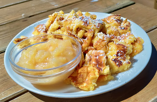 After around 40 minutes of hike from the parking lot of Mais-alm, you will reach the destination. There are several benches for those who want to sit outside the alm as well as inside . Tried Käsespätzle mit Röstzwiebeln and Kaiserschmarrn with Apfelmus. Both were delicious. Service was good too. There is a toilet in the alm...
