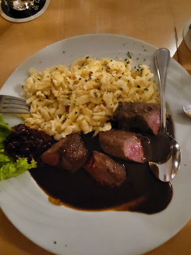 Read morea very nice atmospheric beer garden, the food is as usual in good portion. we spent a tuesday night here, the place was not that crowded which is great. there is specialty menu every night, tuesday is for steak. i ordered a championion sauce schnitzel with spaztler tastes...