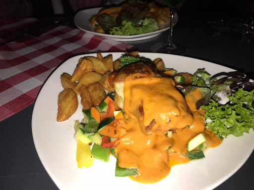 Read moreHeute waren wir zum ersten mal in dieser "Gaststätte" und sicher auch zum letzten mal! Gegen 13uhr 20 betraten wir die Gaststube und hatten immerhin nach einer Dreiviertelstunde unsere beiden Hauptgerichte, wenn man diese als solches bezeichnen darf. Ich hatte ein Schnitzel mit Blumenkohl, Brokoli, Kroketten und Bratensoße in der ein halber Pfirsich schwamm. Beide Gemüse total ungewürzt, das Schnitzel hauchdünn, kaum Pannade, dafür aber bretthart. In der Bratensoße lagen hilflos 2 halbe Champions, die Soße selber schmeckte eigentlich ganz gut, jedoch leider total nach Rindsroullade. das Gericht meiner Frau sollte ein mit Feta Käse und Tomate überbackenes Schnitzel sein, sollte! Beim "herausoperieren" des Schnitzels machte es ein sehr dünnen und dunkel verfärbten Eindruck, extremst dünn, fast ohne Pannade, knochenhart. Ich vermutete Fertigschnitzel, übergeblieben, und dann im der Mikrowelle zu "neuen Leben" gebracht. Die Bedienung gab dann auch unumwunden zu das TK Schnitzel zum einsatz kommen, bäh....................... Der vorher gereichte Salatteller bestand aus geraspelten Sellerie und Rotebeete, geteilt durch ein Stückchen Melone, das Dressing kam aus der Originalflasche vom Netto direkt auf den Tisch. Sorry, aber das ist mittleres Imbissniveau, das hat mit Gaststätte nichts gemein! Das Ambiente ist okay, das war es...