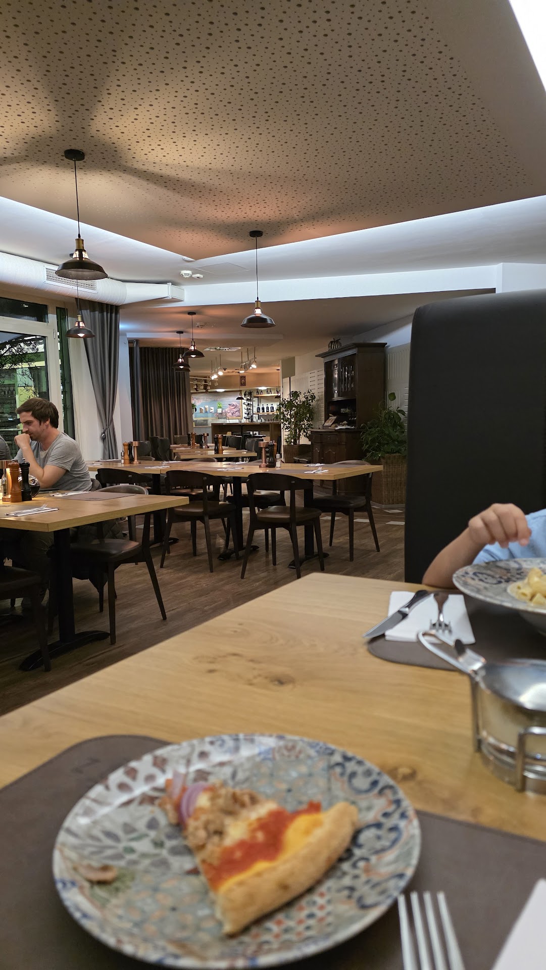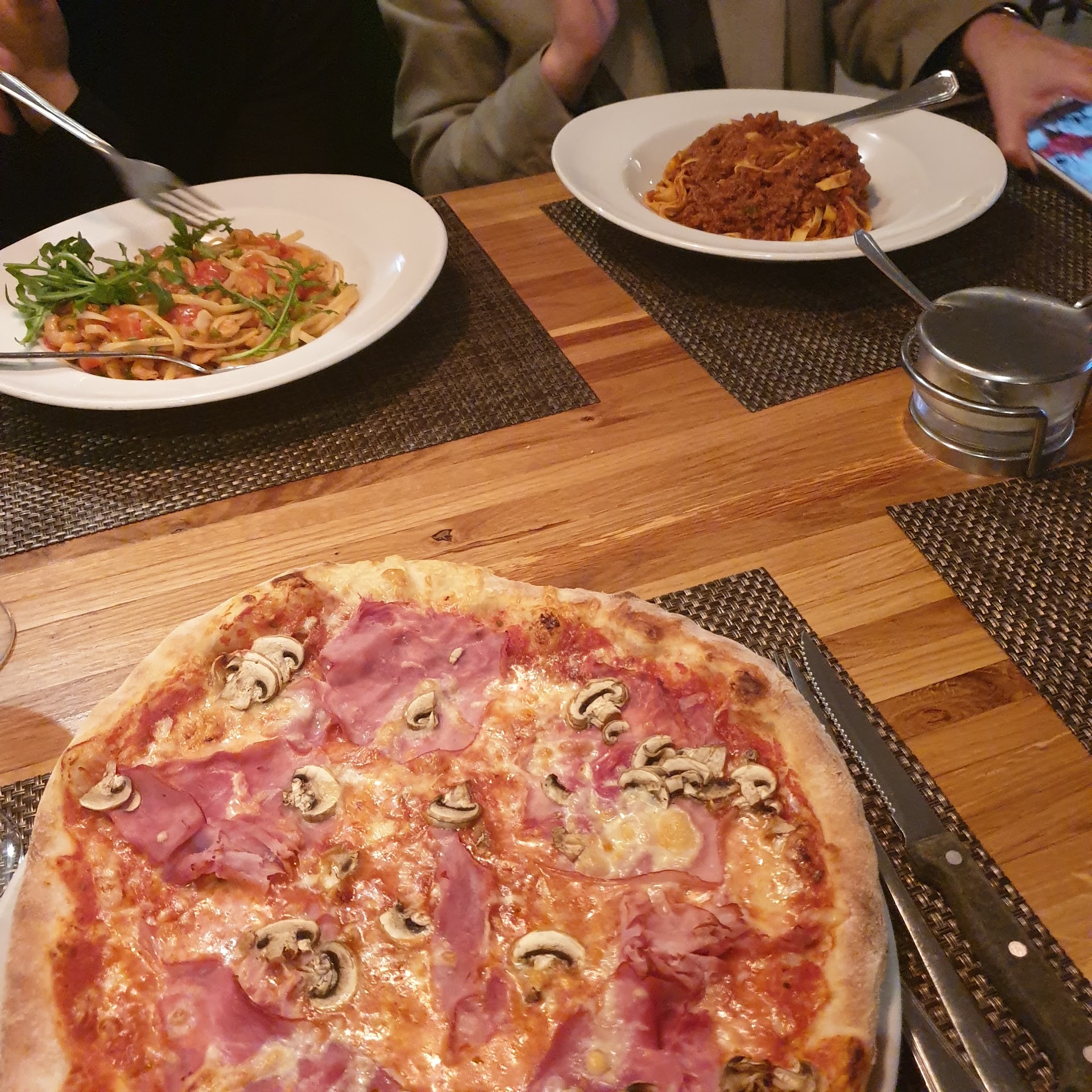 If you like yelling over your beef carpaccio through an empty restaurant for a waiter that’s too busy gossiping to take your drink order: this is the place! Two waiters, only three tables occupied, and I had to go out of my way every time I wanted something, because no one thought that I should need anything...like food. The food itself was also a mix of bar food and culinary exquisiteness. For some reason, I had a pepper grinder and Parmesan shaker placed arbitrarily on my table (They serve pizza here too).
