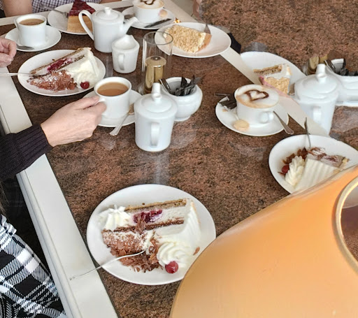 Der Service war sehr aufmerksam und bemerkenswert freundlich. Das Ambiente konnten wir in voll Zügen genießen, da es ja nicht durch viele Menschen verdeckt wurde. Es passt alles stimmig überein. Die Auswahl der Torten war sehr groß, weswegen wir auch unter anderem beschlossen haben, noch mal wiederzukommen, um auch andere Torten probieren zu können. Denn die selbstgemachten Torten, die nichts mit Convenience-Produkten zu tun hatten, waren alle sehr lecker. Wir haben uns natürlich zu viert bei den anderen zumindest durchprobiert. Die Stücke waren sehr groß und der Preis für die Qualität auf jeden Fall angemessen. Der Kaffee war übrigens auch sehr gut, sehr aromatisch und überhaupt...