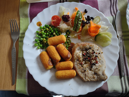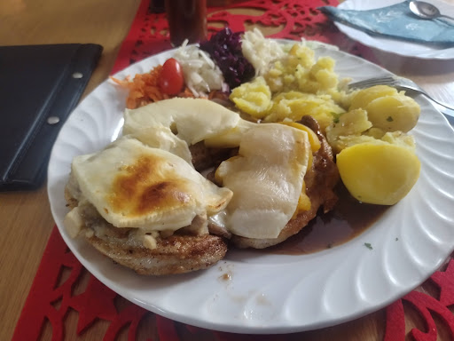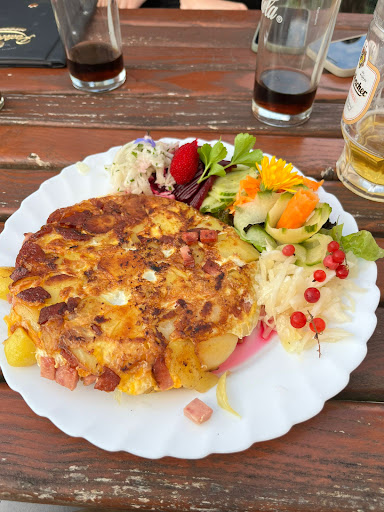 Het restaurant leek dicht, we waren de enige gasten. We hadden het vanwege de positieve reviews van de laatste maanden uitgekozen, maar we snappen eigenlijk niet waarom de score zo hoog was. Het bestek en een bordje was niet schoon en mijn dochter viste een lange zwarte haar onder haar varkenssteak vandaan. Het würzfleisch was lekker, de patat ook, maar daarbij kun je dan ook weinig verkeerd doen. De salade was mooi opgemaakt met echte bloemetjes, bloemetjes van radijs en rolletjes wortel, maar de komkommersalade was te zuur en de salade vermoedelijk deels uit een potje. De varkenssteak was taai en aan één kant zat het vlees tegen niet helemaal meer goed aan, misschien te lang gelegen vanwege te weinig klandizie? Er was een plak kaas overheen gebakken die te dik en taai was. Ik heb het vlees op een aantal happen na laten staan. Mijn man en zoon hadden lauwe cola zonder prik. Toetje hebben we maar overgeslagen. Wij komen hier niet weer en vertrouwen de reviewscores op Google ook niet meer zo erg. Voortaan toch maar liever afgaan op het aantal klanten op het terras of in het restaurant! NB deze review is van juli 2022, maar was om de een of andere reden niet gepost, nu wel...