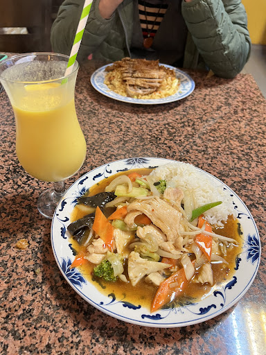 Read moreWir haben Ente mit gebratene Nudeln, Reis mit Hänchenfleisch, gebratener Reis mit Fleisch und Gemüse und Frühlingsrollen für zu Hause mitgenommen und ich muss sagen, die Qualität in dem Imbiss hat sehr stark nachgelassen. Früher hat es dort sehr gut geschmeckt. Diesmal waren die Frühlingsrollen verbrannt (konnte man nicht essen) und das Fleisch sehr trocken. Die Brattnuddeln haben nach nichts geschmeckt... nur dank die Sojasauce gab es etwas Geschmack. Reis schmeckte wie vor 3 Tage gekocht und schnell aufgewärmt. Das Hächchenfleisch war lecker, das war aber auch das einzige. Habe leider nur 1 Foto auf die schnelle gemacht. Hätte gerne die verbrannte Frühlingsrollen gezeigt. Wirklich sehr schade. Haben entweder Pech gehabt, da wir am Montag Essen geholt haben, oder es wird jetzt immer in großen Mengen vorgekocht und nur aufgewärmt. Dafür ist aber der Preis echt zu viel. Wir werden leider zukünftig...