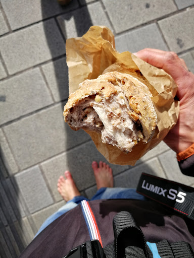 Die Theke steht direkt vor der Manufaktur, d.h. man kann beim Brot backen quasi zusehen. Wenn ich morgens hier vorbeilaufe duftet die ganze Straße nach frisch gebackenem Brot :-)