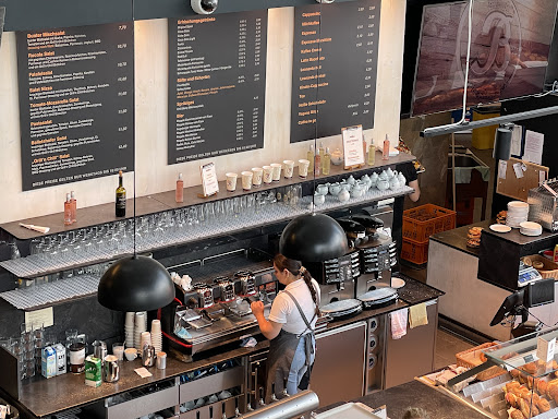 Easy and quick access by car. Fast sevice. Very well managed according to the customer-flow according to the time of service. First choice for bruch because of the efficient and undemanding menu which is efficiently displayed. The expansive terrace is a delight. The traffic on the busy and proximal road does not disturb because you are within an awe-inspiring building. There is often stupid music and the customers can be quite loud, but an escape to the stylish second floor relieves most apprehensions. The food is good and the bakery delivers the range of fast baking with...