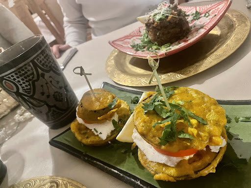 Wir haben uns schon lange vorgenommen dort mal essen zu gehen, gestern war nach langer Vorfreude der besagte Abend. Wir gingen mit gutem Appetit in das Restaurant. Der erste Eindruck war sehr positiv, die Einrichtung und das Ambiente sind sehr schön. Wir wurden freundlich und nett empfangen. Als uns die Bedienung die Speisekarten brachte hieß es gleich im vor ab es gibt kein Lamm mehr. Na gut dann schauen wir nach was anderem, obwohl ich mir im Vorfeld auf der Website ein Gericht aus Lamm ausgesucht hatte. Ist natürlich etwas schwierig wenn der größte Teil der Karte Lammfleisch Gerichte sind! Wir haben uns dann für drei unterschiedliche Essen mit Huhn entschieden. Die Wartezeit ist schon relativ lange aber war für uns jetzt nicht ein entscheidendes Probleme, denn wenn das Essen frisch gekocht wird nimmt man es gerne in Kauf. Als wir dann nach ca einer Stunde serviert wurden kam ziemlich schnell die nüchterne Enttäuschung. Alle drei Portion waren dermaßen klein und wenig das wir uns erstmal nur angeschaut haben. Jeder hat dann sein bestelltes Essen probiert und ich muss sagen, ich hab noch nie so was langweilige geschmackloses auf dem Teller gehabt wie das. Die Brühe in der mein Hähnchen lag erinnerte mich stark an eine Hühnersuppe, bei Krankheit in meiner Kindheit, die einfach nicht schmeckte. Mein Mann hat mich sein Couscous probieren lassen und auch das war alles lieblos fade und langweilig. Die Hähnchenspiesse unserer Tochter schmeckten auch nur nach Fett und waren extrem trocken. Scheinbar hatten wir viel zu große Erwartungen in die große Welt der marokkanischen Gewürzvielfalt und den dadurch entstehenden Geschmäckern. Leider wurden wir bei allen drei Gerichten geschmacklich wie von den Zutaten her komplett enttäuscht! Da hilft es auch nicht das alles Bio ist, denn auch mit Bio Produkten kann man geschmackliche Explosionen schaffen. Geschweige das Preis-Leistungsverhältnis stimmt leider überhaupt nicht überein. 75€ für drei langweilige Essen, zwei Minzlimonaden ,ohne Kohlensäure, die mich eher an abgestandenes Wasser mit Limette-Minze erinnerten, und ein alkoholfreies Bier sind schon amtlich. Auf dem Foto sieht man den Glasinhalt der „Limonade“ für amtliche 5,30€ für 0,25l! Vor allem wenn man danach hungrig und mega enttäuscht das Lokale verlässt. Für uns war es der Erste aber auch letzte Besuch hier! Wirklich schade wir hätten Euch gerne eine bessere Bewertung gegeben aber leider waren wir überhaupt...
