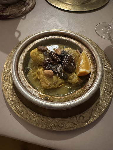 Wir haben uns schon lange vorgenommen dort mal essen zu gehen, gestern war nach langer Vorfreude der besagte Abend. Wir gingen mit gutem Appetit in das Restaurant. Der erste Eindruck war sehr positiv, die Einrichtung und das Ambiente sind sehr schön. Wir wurden freundlich und nett empfangen. Als uns die Bedienung die Speisekarten brachte hieß es gleich im vor ab es gibt kein Lamm mehr. Na gut dann schauen wir nach was anderem, obwohl ich mir im Vorfeld auf der Website ein Gericht aus Lamm ausgesucht hatte. Ist natürlich etwas schwierig wenn der größte Teil der Karte Lammfleisch Gerichte sind! Wir haben uns dann für drei unterschiedliche Essen mit Huhn entschieden. Die Wartezeit ist schon relativ lange aber war für uns jetzt nicht ein entscheidendes Probleme, denn wenn das Essen frisch gekocht wird nimmt man es gerne in Kauf. Als wir dann nach ca einer Stunde serviert wurden kam ziemlich schnell die nüchterne Enttäuschung. Alle drei Portion waren dermaßen klein und wenig das wir uns erstmal nur angeschaut haben. Jeder hat dann sein bestelltes Essen probiert und ich muss sagen, ich hab noch nie so was langweilige geschmackloses auf dem Teller gehabt wie das. Die Brühe in der mein Hähnchen lag erinnerte mich stark an eine Hühnersuppe, bei Krankheit in meiner Kindheit, die einfach nicht schmeckte. Mein Mann hat mich sein Couscous probieren lassen und auch das war alles lieblos fade und langweilig. Die Hähnchenspiesse unserer Tochter schmeckten auch nur nach Fett und waren extrem trocken. Scheinbar hatten wir viel zu große Erwartungen in die große Welt der marokkanischen Gewürzvielfalt und den dadurch entstehenden Geschmäckern. Leider wurden wir bei allen drei Gerichten geschmacklich wie von den Zutaten her komplett enttäuscht! Da hilft es auch nicht das alles Bio ist, denn auch mit Bio Produkten kann man geschmackliche Explosionen schaffen. Geschweige das Preis-Leistungsverhältnis stimmt leider überhaupt nicht überein. 75€ für drei langweilige Essen, zwei Minzlimonaden ,ohne Kohlensäure, die mich eher an abgestandenes Wasser mit Limette-Minze erinnerten, und ein alkoholfreies Bier sind schon amtlich. Auf dem Foto sieht man den Glasinhalt der „Limonade“ für amtliche 5,30€ für 0,25l! Vor allem wenn man danach hungrig und mega enttäuscht das Lokale verlässt. Für uns war es der Erste aber auch letzte Besuch hier! Wirklich schade wir hätten Euch gerne eine bessere Bewertung gegeben aber leider waren wir überhaupt...