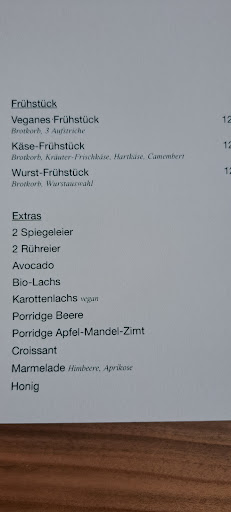 Das Mandelcroissant mit Schoki Füllung ist zu empfehlen, weil sehr lecker. Leider gab es als Frühstück (noch) nicht viel Auswahl. Es gibt ein veganes, ein Käse- und ein Wurst-Frühstück für 12,90 Euro mit einem Brotkorb für 2 Personen aus 4 Scheiben Brot und 2 unterschiedlichen kleinen Semmeln. Für 2 Personen einfach zu wenig. Unserer Meinung nach, waren die Preise für die Frühstücke zu hoch und der Menge nicht angemessen. Auch die Kuchenstücke erschienen uns ziemlich schmal, welche mit 4,50 Euro bzw 4,00 Euro zu Buche schlugen.