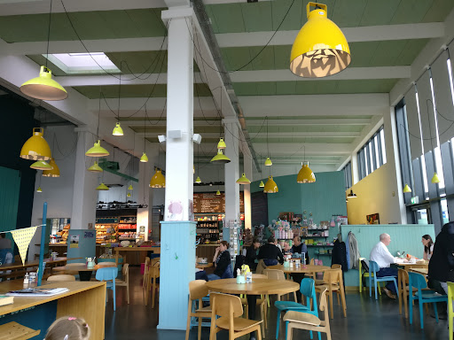 Read moreEin nettes Café in einer ruhigen Umgebung in einem ehemaligen Schlachthof Areal. Mehrere Schöne Grosse Alte Gebäude , sind in ganzen Areal verteilt. Kostenlose Parkplätze stehen genügend zur Verfügung. Wir waren hier an einem Sonntag zum Frühstück. Um 9 Uhr, bekommt man noch einen freien Tisch. So gegen 10 Uhr ist es schon ziemlich voll und auch draußen auf der Terrasse, waren die meisten Tische belegt. Viele der Gäste bleiben locker 2 Stunden. Darum sollten man rechtzeitig dran sein. Eine Reservierung ist hier nicht möglich. Direkt im Gebäude ist auch eine Bäckereien Filiale. In diesem Café gilt die Selbstbedienung. An der Theke bestellt man das Frühstück/ Speisen. Das Getränk wird einem sofort fertig zubereitet und auf einen Tablett gereicht. Mit einem Nummer Kärtchen, kann man sich an beliebigen freien Tisch setzen. Die restlichen Speisen, werden dann von der Bedienung an den Tisch gebracht. Die Speisen sind schön Dekoriert. Das Geschirr in Retro Look, ist wahllos zusammen gewürfelt. Passend zu dieser Location Die Portionen der Speisen könnten etwa größer sein . Günstig ist es hier auf gar keinen Fall. 1 x gekochtes Ei kostet 2,50 €. Eine Portion, Rührei kostet 6,50 €. Zwei Spiegel Eier kosten 6,50 €. Es ist alles schön Dekoriert aber doch von der Menge etwas zu wenig. Ein Obst Salat, kostet 6,80 € und besteht überwiegend aus Äpfeln, und auch ist diese Portion eher klein. Zwei Personen zahlen hier für das Frühstück locker über 50 €. Es ist ein nettes Frühstück Café, aber definitiv zu teuer. Hier werden Lebensmittel verarbeitet von Bio Qualität und Demeter. Trotzdem im Vergleich zu den kleinen Portion sind die...