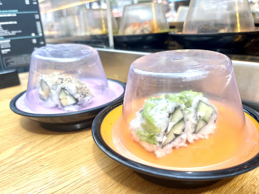 Es fahren hochwertige Nigiri und Maki (außer Gunkan) an einem vorbei, aber auch zahlreiche andere Sachen wie Garnelen, gebackenes Huhn, Fleischspieße, Krupuk, Wantan und anderes frittiertes Zeug sowie Desserts.