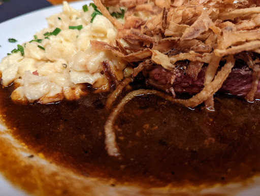 Was soll ich sagen... sie haben alles rausgeholt. Lisa hat sich mehr als fürsorglich um uns gekümmert. Ich hatte den Dolomiten-Burger mit Süsskartoffelpommes. Dieser war wie schon beim letzten mal sehr gut. Meine Frau hatte die Ochsenbäckchen. Sehr lecker. Diese sind auf der neuen Winterkarte. Der Zwiebelrostbraten unserer Begleitung diesmal perfekt auf den Punkt, wie gewünscht. Der Kaiserschmarrn ist auch sehr empfehlenswert!