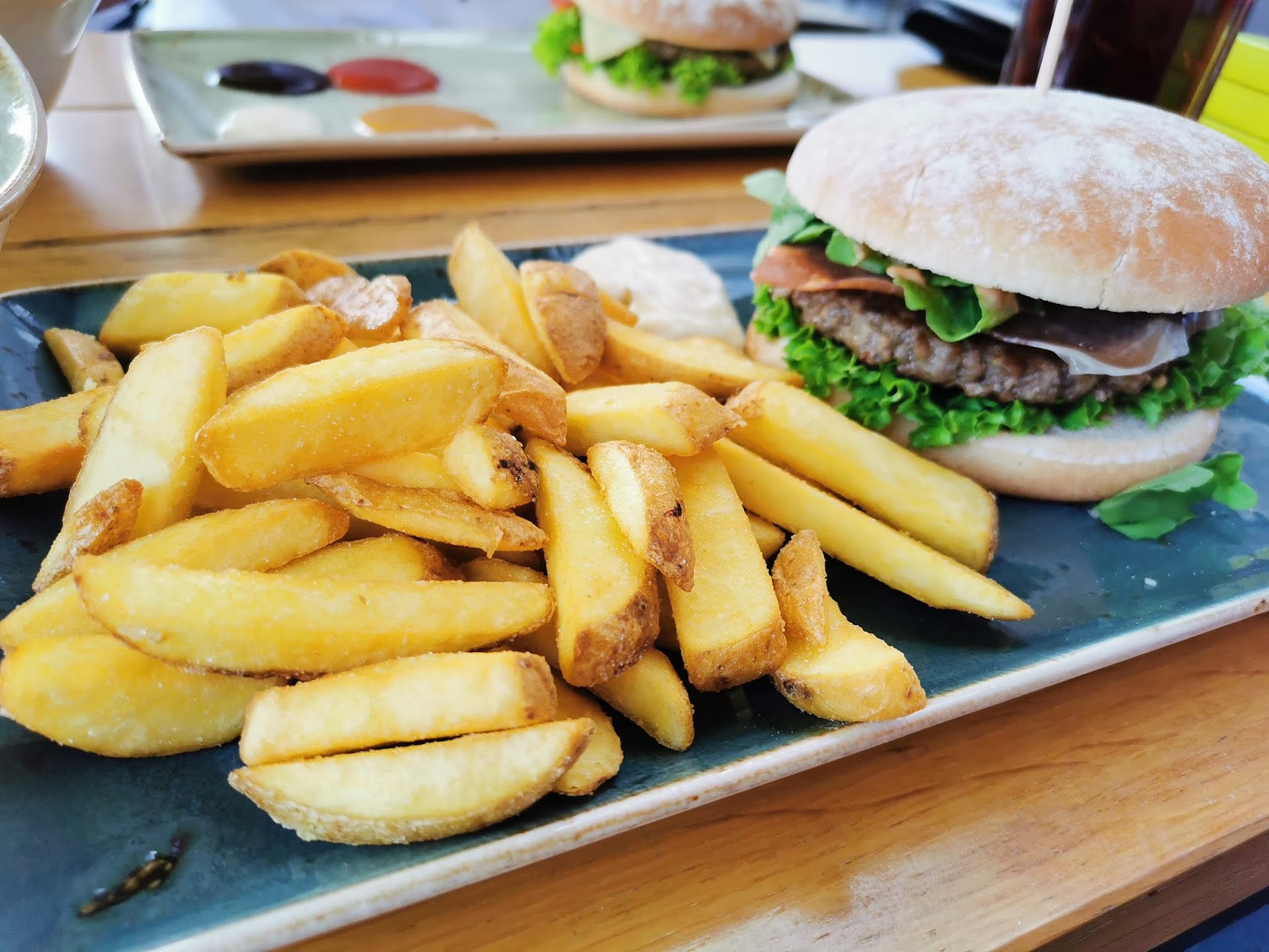 Read moreDiese Rezension beruht auf mehreren Besuchen im Hans im Glück in Augsburg: Lage: Verkehrstechnisch sehr günstig hinter der City Galerie gelegen findet man das neu eröffnete Hans im Glück. Parkplätze vor dem Haus gibt es wenige - man kann jedoch auf das gegenüberliegende Parkhaus ausweichen. Das Restaurant: Es verfügt über den gleichen Flair wie alle Hans im Glück Restaurants: Viele Birkenstämme zur Deko, gleiches Speisenangebot. Es gibt vor dem Restaurant Außenbestuhlung, jedoch liegt diese angrenzend zu einer Hauptverkehrsader in Augsburg. Sitzplätze sind sehr platzsparend gehalten. Das Essen: An den Burgern ist prinzipiell nichts auszusetzen. man kann das Bun, den Belag sowie die Beilagen individuell auswählen. Zudem stehen auf dem Tisch 4 Standardsaucen von denen man sich bedienen kann. Das Burgerpatty ist Massenware, es wird nicht gefragt welchen Gargrad man haben will. Der Service: Sehr freundlich und immer bemüht es den Gästen schön zu machen.