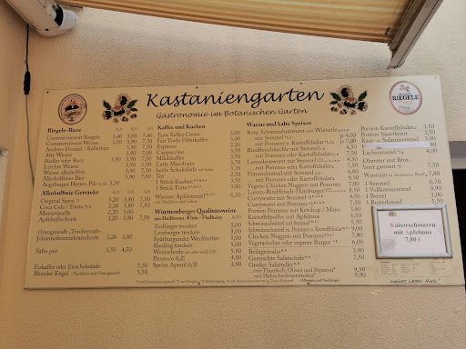 Read moreSehr schöner gemütlicher Biergarten mitten im Botanischen Garten von Augsburg, die Speisekarte ist übersichtlich und vollkommen ausreichend, es ist hier sicherlich für jeden etwas dabei, das Essen war in Ordnung und das Personal sehr freundlich. Einzig die Sauberkeit der Biergartentische möchte ich bemängeln auch müsste nicht auf jeden Tisch ein Aschenbecher stehen. Trotzdem zu empfehlen wenn man sich hier im Botanischen Garten aufhält, ein kühles Bier zwischendrin und ein Eis für die Kinder geht immer. Unter den Kastanienbäumen ist es auch sehr angenehm an einem...