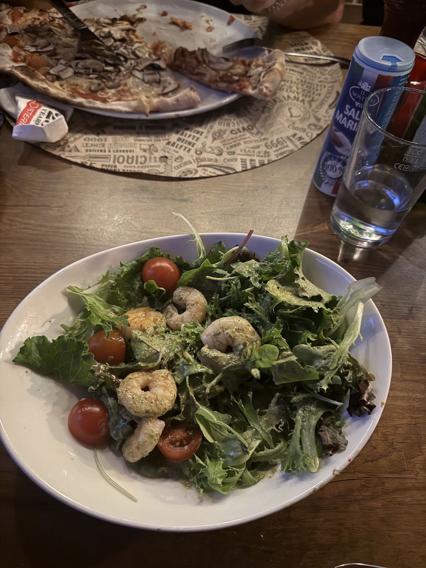 Nice Pizza and the atmosphere is really pleasent. Has a holiday feeling and that's not bad considering you are only a few meters from a supermarket. For a restaurant in a suburban area it's really nice and also tastefully furnished. Top. Why 3 points? Service outside is very poor. Takes time to order and the next time a waiter asks if you require anything you have long eaten. Pity. Friendly staff. Either they are very inexperienced or very understaffed. If you say to a waitress hello or excuse me then the expected answer is not hello back and run away quickly. I would go there again because I like it and it's close by. Just don't expect service or go somewhere else if trying to impress or u want...