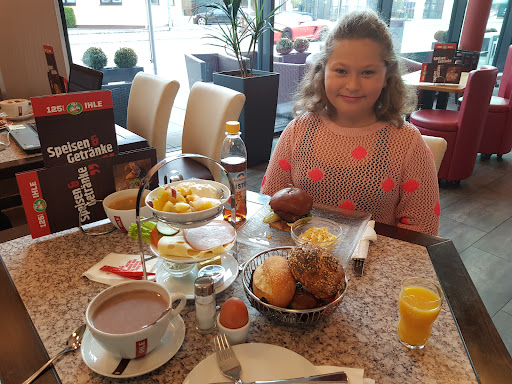 Read moreDas Ihle Café in Neusäß ist sehr hübsch, moderne und angenehm ausgestattet, da sitzt man gerne auf eine Tasse Kaffee oder einem guten Stück Kuchen entweder innen oder im Außenbereich wo hübsche Sitzgruppen aufgestellt sind. Die meistens recht jungen Mitarbeiter sind freundlich, kompetent und nett (Ausnahmen gibt's manchmal auch aber grundsätzlich kann man sich nicht beschweren). Die Toiletten sind sauber und das ist sehr wichtig für mich weil in der Innenstadt Augsburgs habe ich beim Ihle in der Bahnhofstraße auch das Gegenbeispiel erlebt. Das Sortiment an Backwaren und Broten ist sehr groß, das meiste schmeckt sehr lecker - das ist aber auch mit dem persönlichen Geschmack verbunden. Was mir sehr gefällt, ist dass es auch viele Vollkornbrote und Brötchen gibt, und neulich sogar aus Urgetreide - das finde ich mal klasse! Ich gehe auch gerne zum Frühstück ins Ihle Café. Hier kann man wirklich sehr gut frühstücken! Das Angebot lässt keine Wünsche offen und für einen angemessenen Preis kann man wirklich lecker essen zum Frühstück. Das gilt aber nur für das Frühstück - leider sind die zubereiteten Speisen... na ja - so lala... Aber Frühstück kann ich wirklich empfehlen, absolut lecker 👍. Das Preis-Leistungs-Verhältnis ist auch ok. Toll finde ich, dass es abends meistens eine halbe Stunde oder Stunde vor Ladenschluss die "Happy-Hour" gibt wo es viele Backwaren zum halben Preis gibt. Ist doch mal eine tolle Sache - bevor so viel weggeworfen wird. Es wird eh genug verschwendet in unserer Gesellschaft da finde ich es einen tollen Zug von Herrn Ihle oder Frau Ihle (wer auch immer das Geschäft leitet) diese Happy Hour einzuführen. Daumen hoch 👍 und darauf ein leckeres Sesambrötchen...