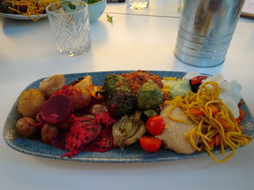 The food here is excellent and very delicious. The lunch buffet is rich in veggie and vegan options. Absolutely wonderful. Plus the service is very kind and helpful. The only thing I found very irritating is that they do not offer the option to drink tab water. Instead they sell water bottles at a six fold price!! It is very frustrating when you have some of the best tab water in Germany at hand. We even offered to pay for it. From an ecological point of view this is also very disappointing. They also charge 1€ for a container. On the upside the container is made of paper...