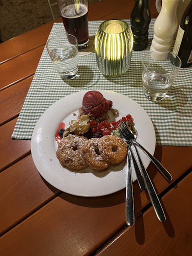 Read moreWaren bisher 2x da. Der Biergarten liegt idyllisch und ruhig, allerdings ist die Parkplatzsituation entsprechend schwierig, sodass man 10-15 min suchen muss. Das ist der erste Grund, warum wir nicht mehr kommen werden. Aktuell ist es uns nicht möglich mit dem Fahrrad oder öffentlichen Verkehrsmitteln zu kommen. Der zweite Grund ist das Essen. Es sieht zwar hübsch angerichtet aus, ist uns jedoch nicht schmackhaft genug. Die Tortellini waren zu weich gegart (matschig) sowie geschmacklos (nicht gewürzt). Die Kässpatzen waren langweilig und trocken und die Portion mit essigsaurem Salat garniert. Der Saibling war nicht kross. Der Salat mit Halloumi hatte ein unspektakuläres Dressing. Kein einziges Essen kam mit Raffinesse daher! Alles in allem für den stolzen Preis viel zu wenig Darbietung. Der Mann im Service ist sehr bemüht und präsent, auch Kindern gegenüber. Er hat uns proaktiv Spiele gebracht. Die Frau im Service ist viel zu langsam und zudem vergesslich. Trotzdem alles Gute! Insbesondere für den professionellen...