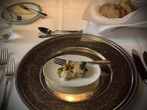 It is truly not easy to find an upscale restaurant that is open for lunch on a Sunday. Therefore, I am even happier to have discovered this gem. The exterior facade hardly hints at what lies inside. The interior is very stylish and elegant. I quickly found a nice spot and was handed the menu and wine list by the extremely attentive service. I opted for the current Ecke menu (6 courses). The wine list ranges from solid to high-end and is compiled with great expertise, ensuring there is something for everyone. Every course was excellent, but I especially want to highlight the corn flounder fillet and the May venison medallion with red wine pepper sauce - simply wonderful.