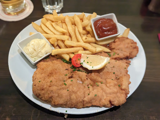 A beautiful beer garden with large shady chestnut trees. I enjoy going here and have for many years. Now when you enter the beer garden you are assigned a seat at the bar and can no longer choose it yourself. But it's quick and easy. Drinks must be ordered and picked up at the counter. In the end, you pay for the food and drinks together with the polite and quick service. Of course, like everywhere else, the portions seem to be a little smaller (this time I had fried chicken salad) and at €17.90 it is very well paid for. The positive thing about this dish is that it wasn't "stretched" with iceberg lettuce, like in so many other restaurants. Nevertheless, all in all, I always enjoy...