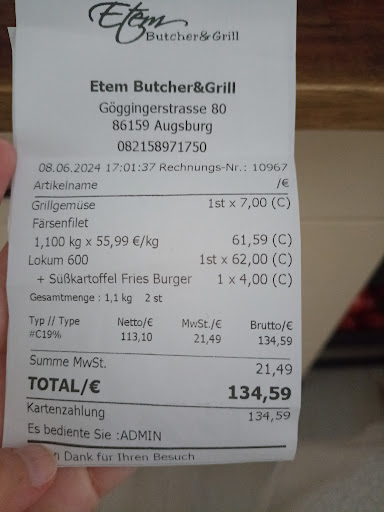 Read moreZu aller erst möchte ich erwähnen, dass wir bei Etem bis zum jüngsten Geschehen Stammkunden waren. Die Burger wie die Steaks sind sehr lecker, das Personal war immer höflich und zudem waren sie schnell.